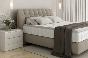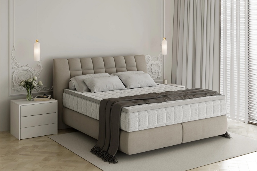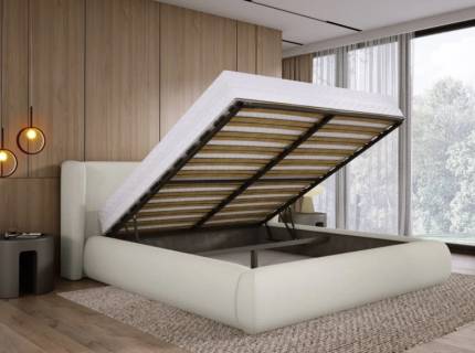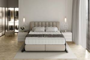 Pat tapitat DIUNA cu somiera si saltea BARLETTA inclusa 140/ 160/ 180cm, personalizabil