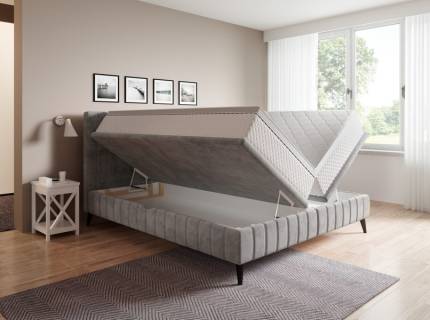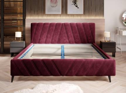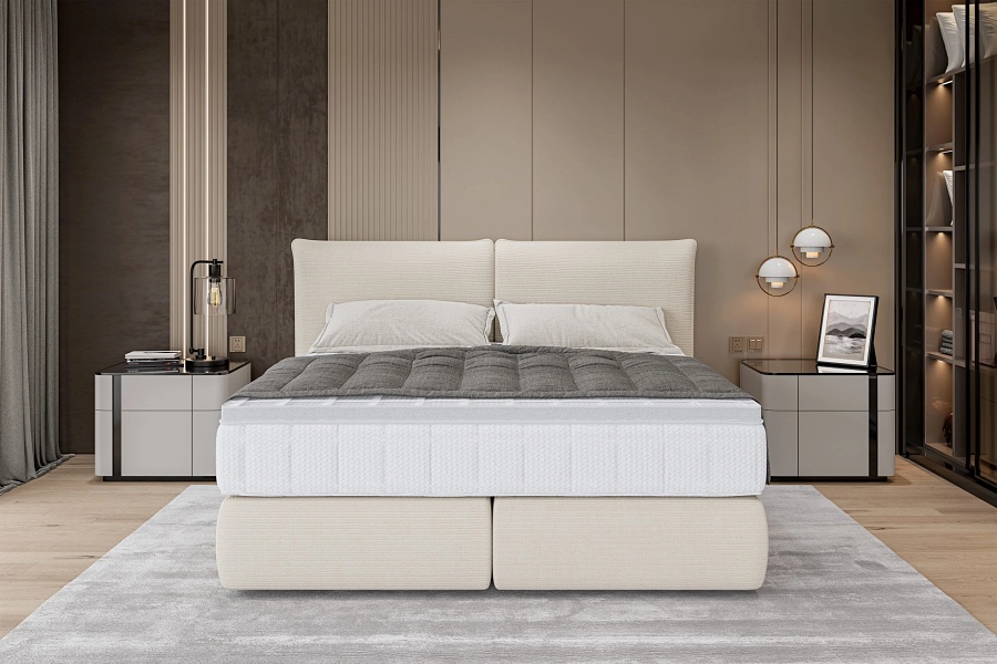Pat tapitat LOU cu somiera si saltea UNIQUE BAMBOO inclusa 140/ 160/ 180cm minimalist, personalizabil
