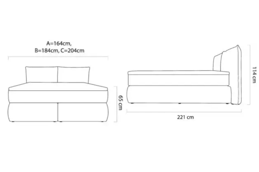 Latime totala: 164 / 184 / 204 cm