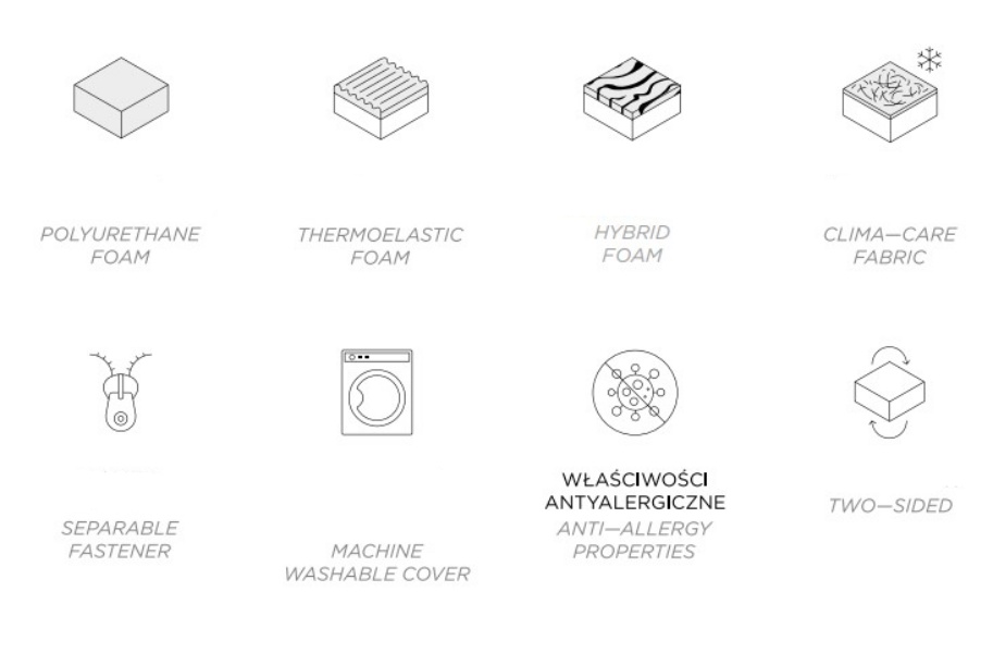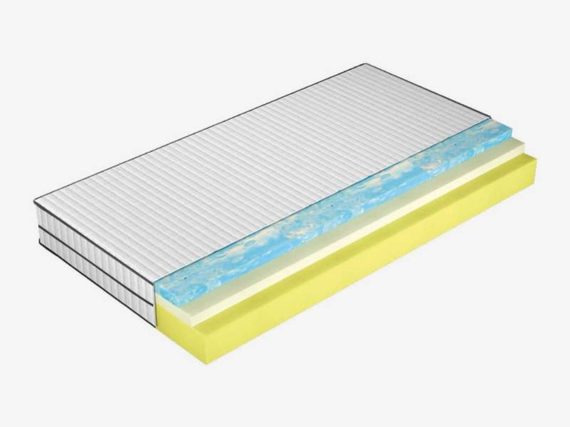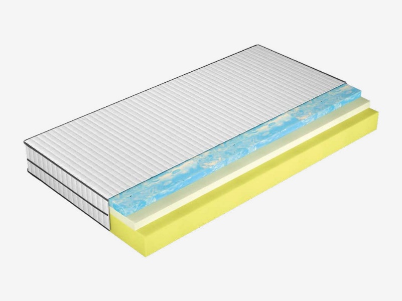 - stratul albastru este spuma termo-elastica (care reactioneaza la temperatura corpului si se potriveste in mod ideal cu greutatea utilizatorului)