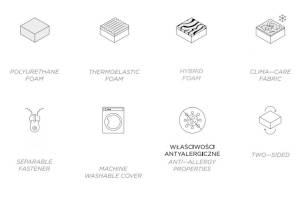 - este acoperita cu o tesatura (poliester si lana), placuta la atingere, care permite aerului sa circule in interiorul ei, prevenind astfel dezvoltarea mucegaiului si a ciupercilor.