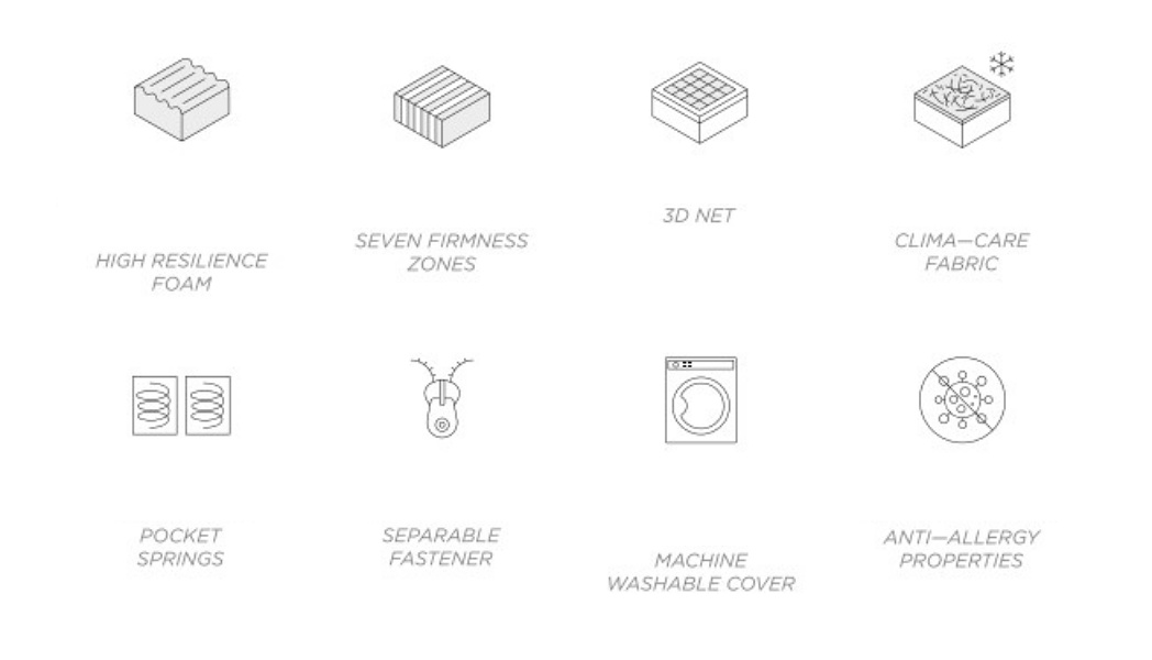 - spuma HR de inalta calitate asigura o sustinere ideala indiferent de pozitia de dormit. Te trezesti odihnit si revigorat datorita spumei potrivit de tare.