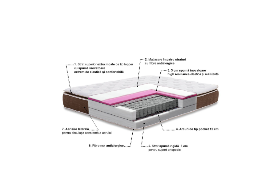 - arcuri ipocket pe 7 zone de 15cm, oferind suport diferit in functie de zona corpului