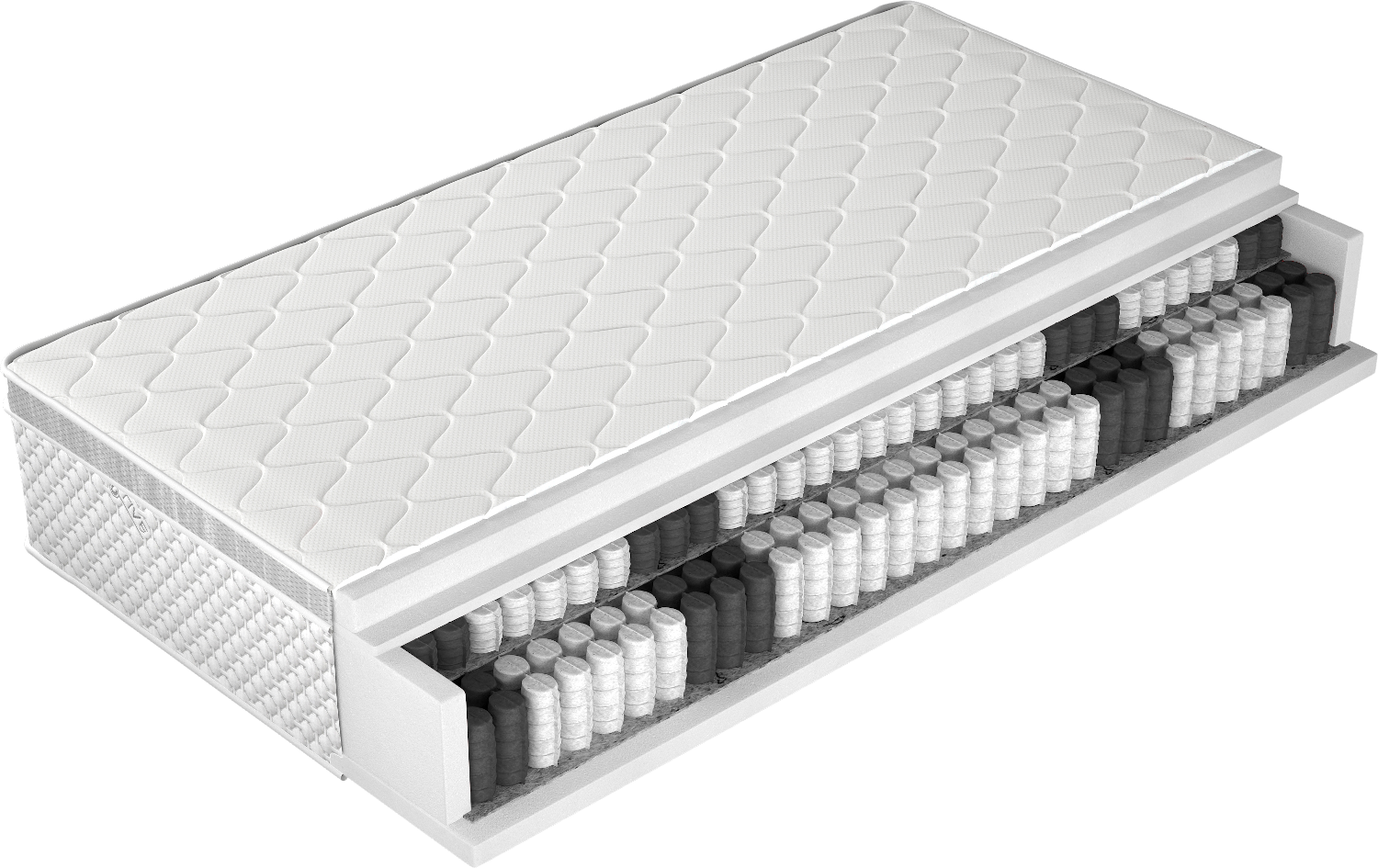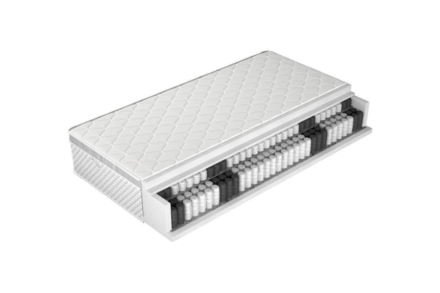 - pe o parte, salteaua are un topper suplimentar cusut, format dintr-o spuma foarte elastica, cu o grosime de 3 cm.