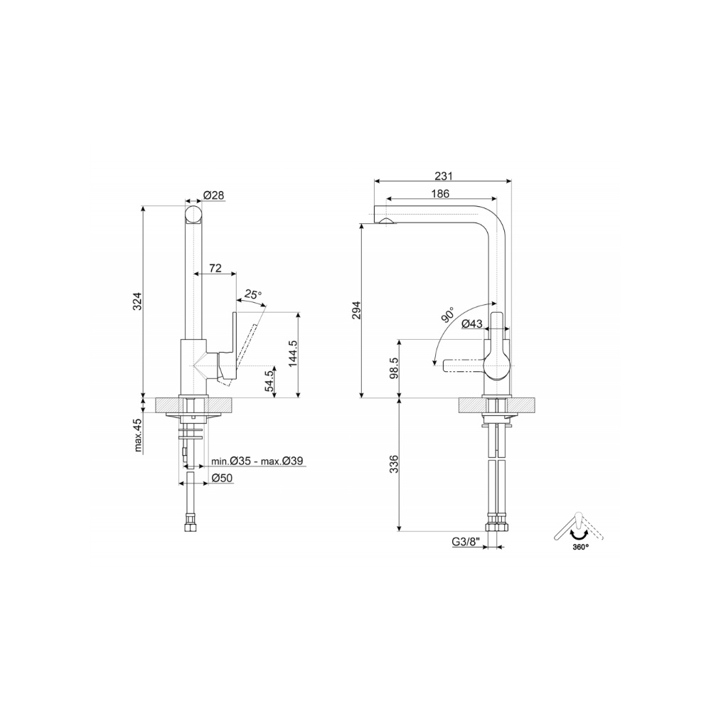 Diametru gaura robinet: 35 mm