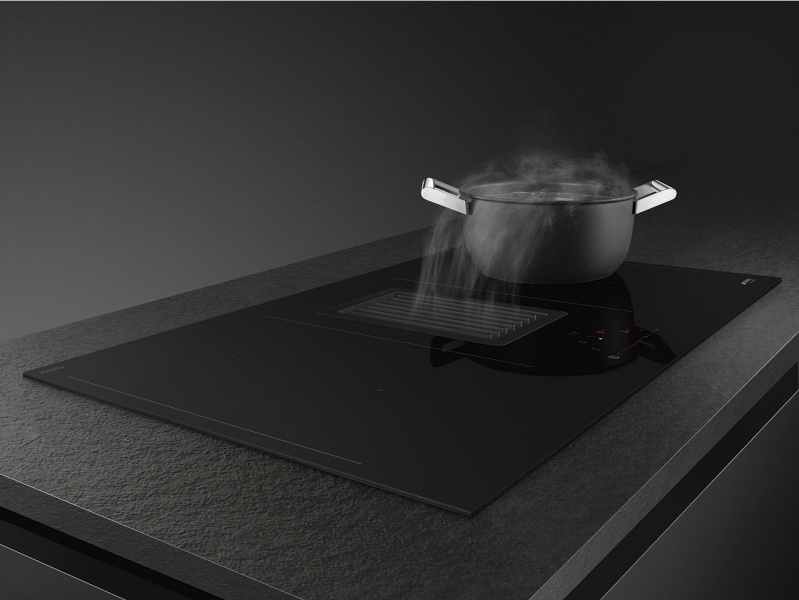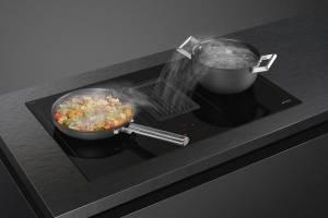 Plita incorporabila cu inductie si hota integrata Smeg HOBD482D, 80 cm latime, negru