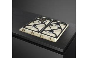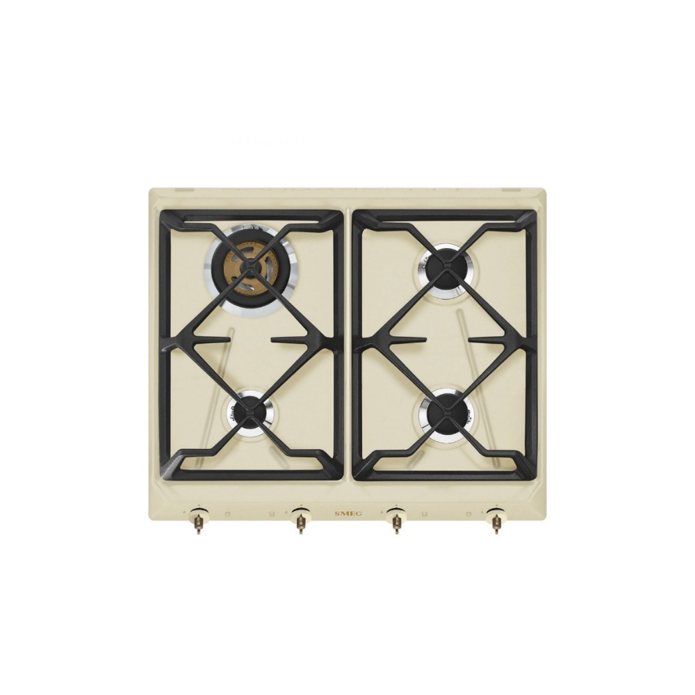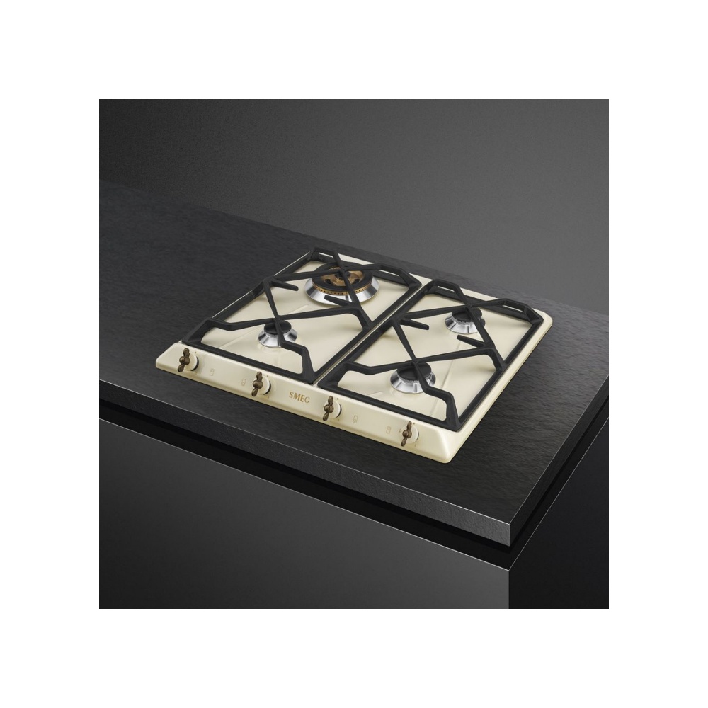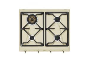 Plita incorporabila gaz Smeg Colonial SRV864POGH, 60 cm, crem cu estetica alama