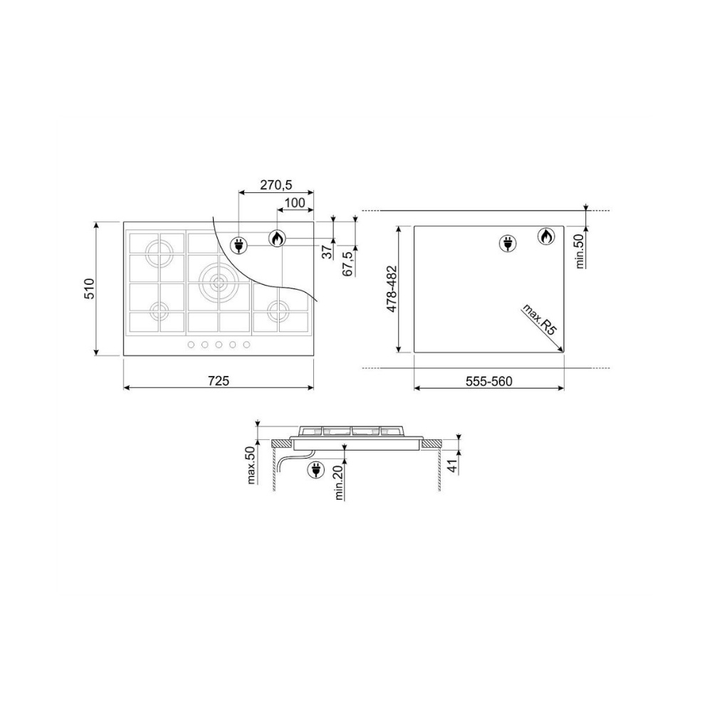 Plita incorporabila pe gaz Smeg Classic PX375, 75 cm, inox antiamprenta