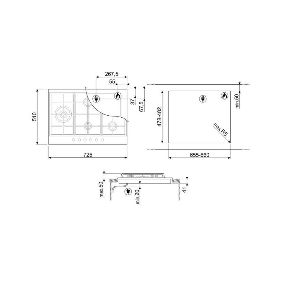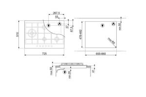 Plita incorporabila pe gaz Smeg Classic PX375L, 75 cm, inox antiamprenta