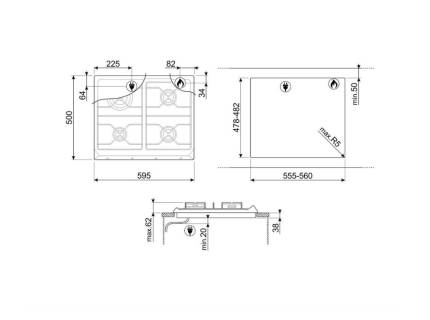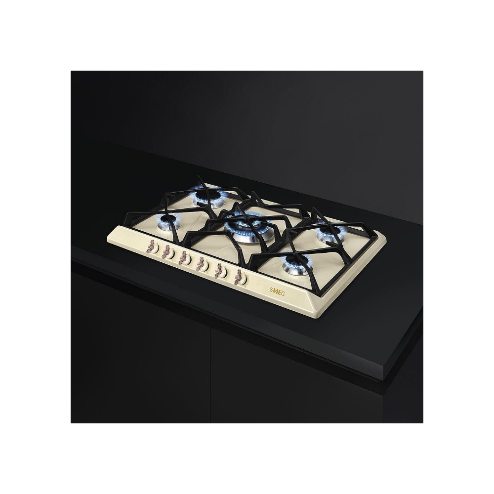 Plita incorporabila pe gaz Smeg Colonial SRV876POGH, 70 cm, crem, retro