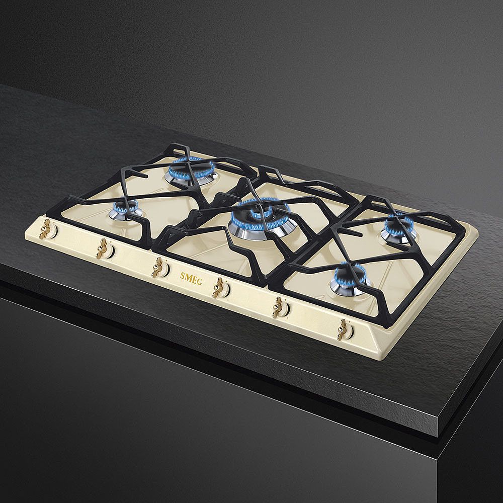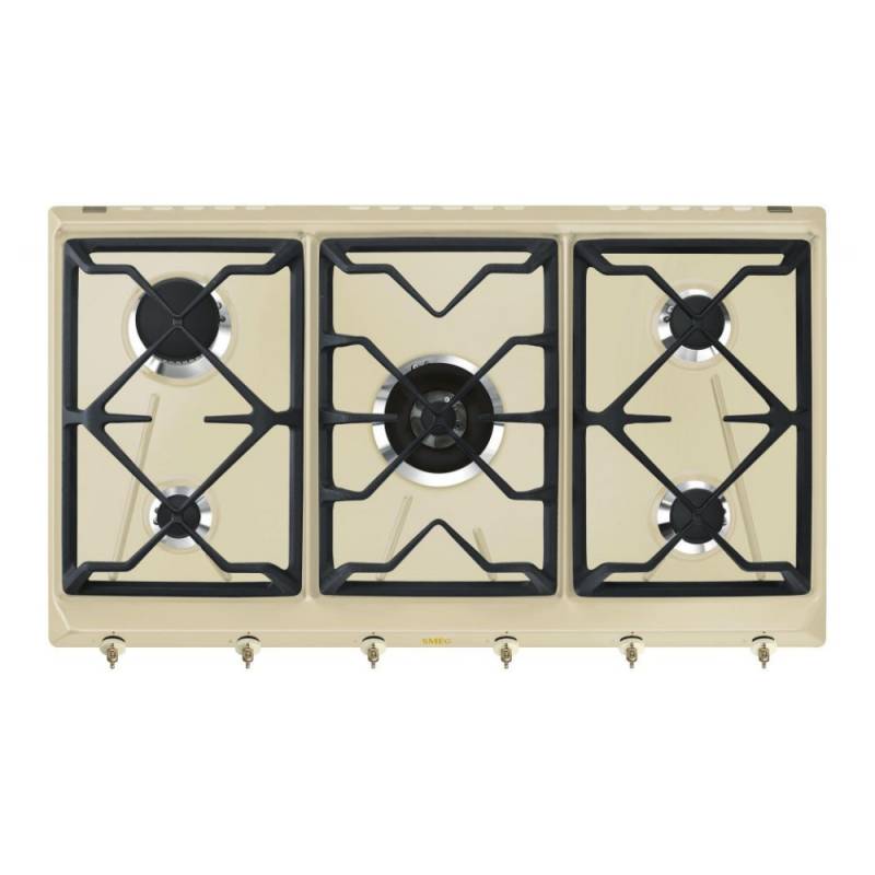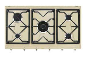 Plita incorporabila pe gaz Smeg Colonial SRV896POGH, 90 cm, crem, retro