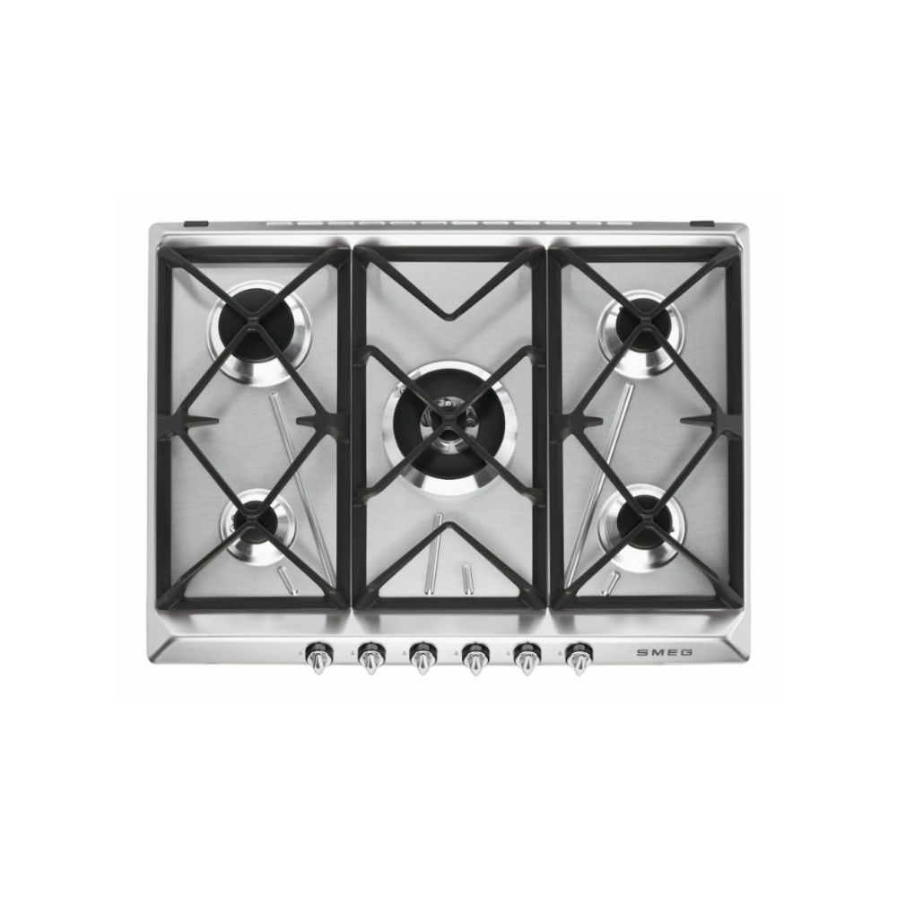 Plita incorporabila pe gaz Smeg Victoria SR975XGH, inox, 70 cm, Wok, fonta