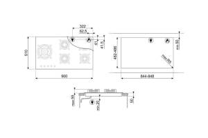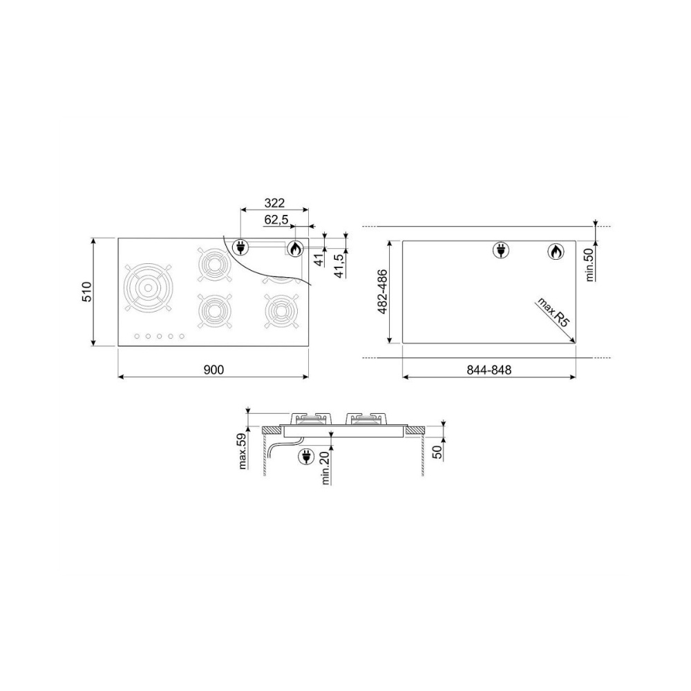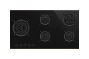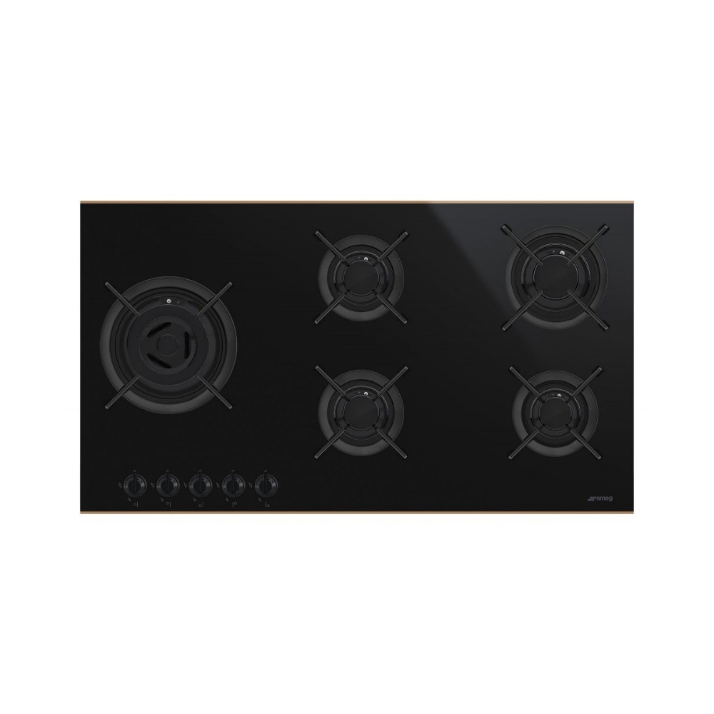 Plita incorporabila vitroceramica pe gaz Smeg Dolce Stil Novo PV695LCNR, 90 cm, negru, finisaj cupru