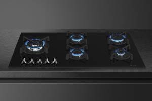 Plita incorporabila vitroceramica pe gaz Smeg PV395LN, 90 cm, negru