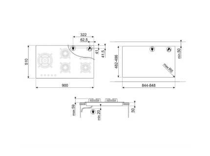 Plita incorporabila vitroceramica retro Smeg Colonial P864PO, 60 cm, rama crem, butoane alama