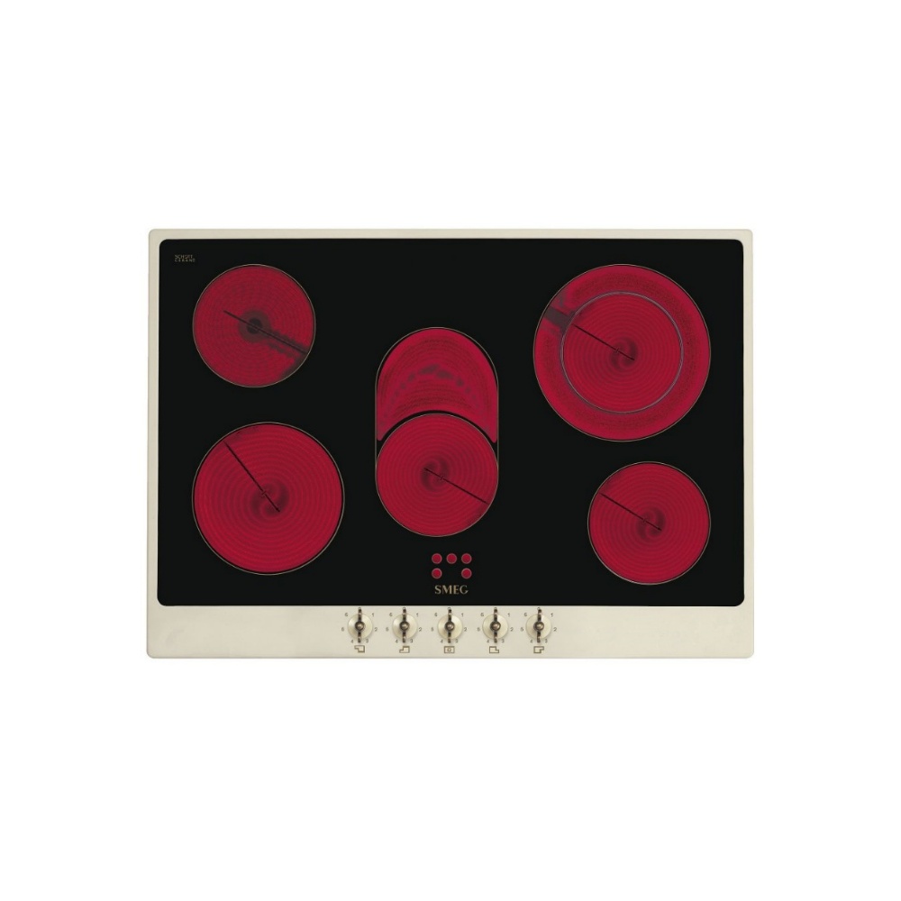 Plita incorporabila vitroceramica retro Smeg Colonial P875PO, 70 cm, rama crem