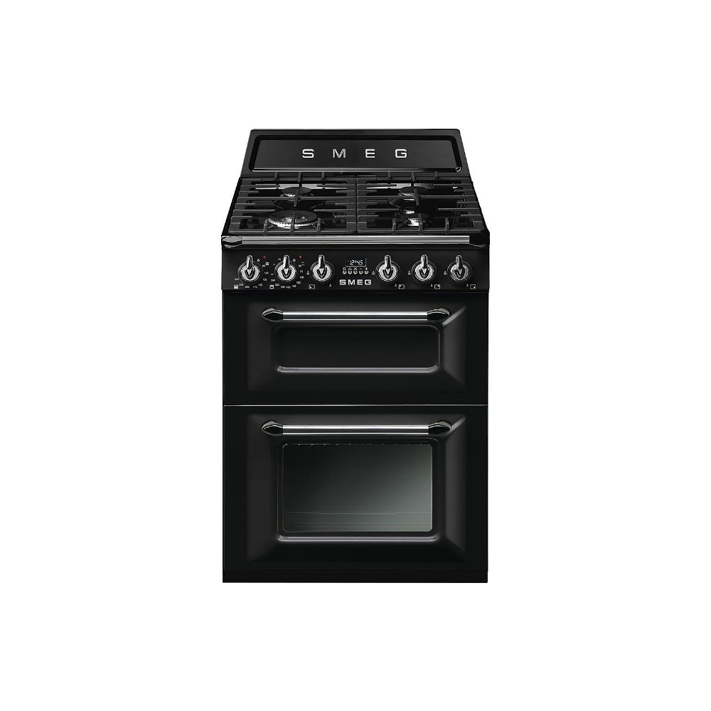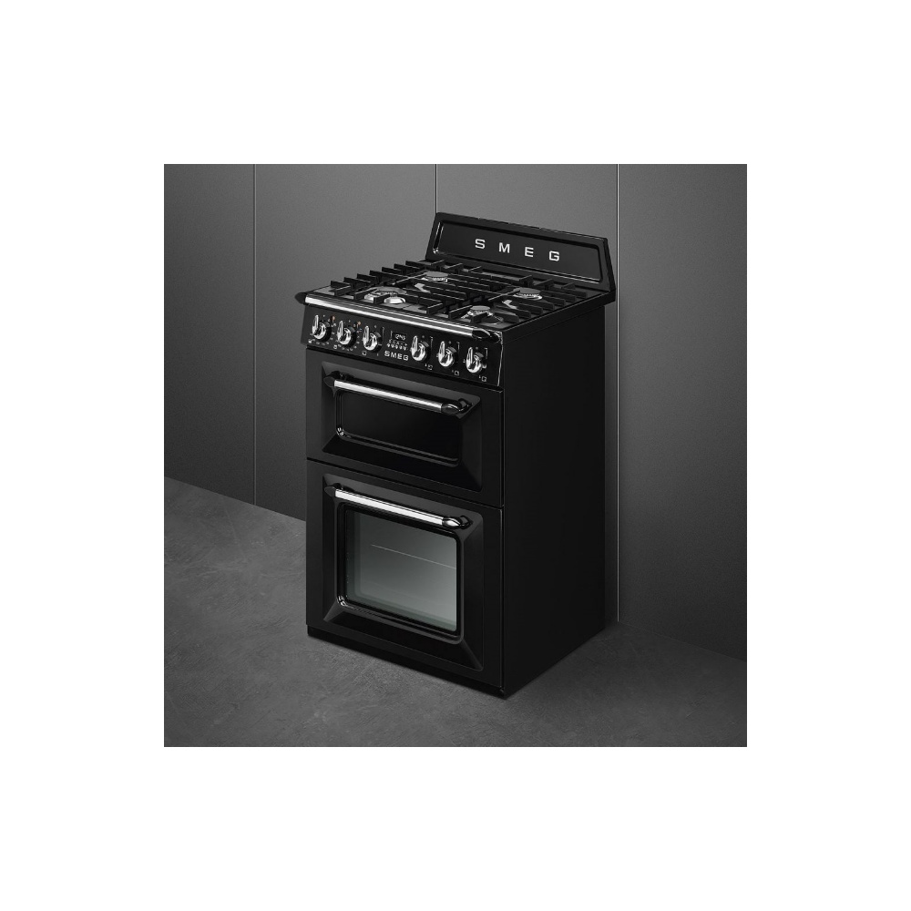 Aragaz mixt Smeg Victoria TR62BL, negru, 60 cm latime, retro