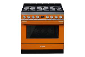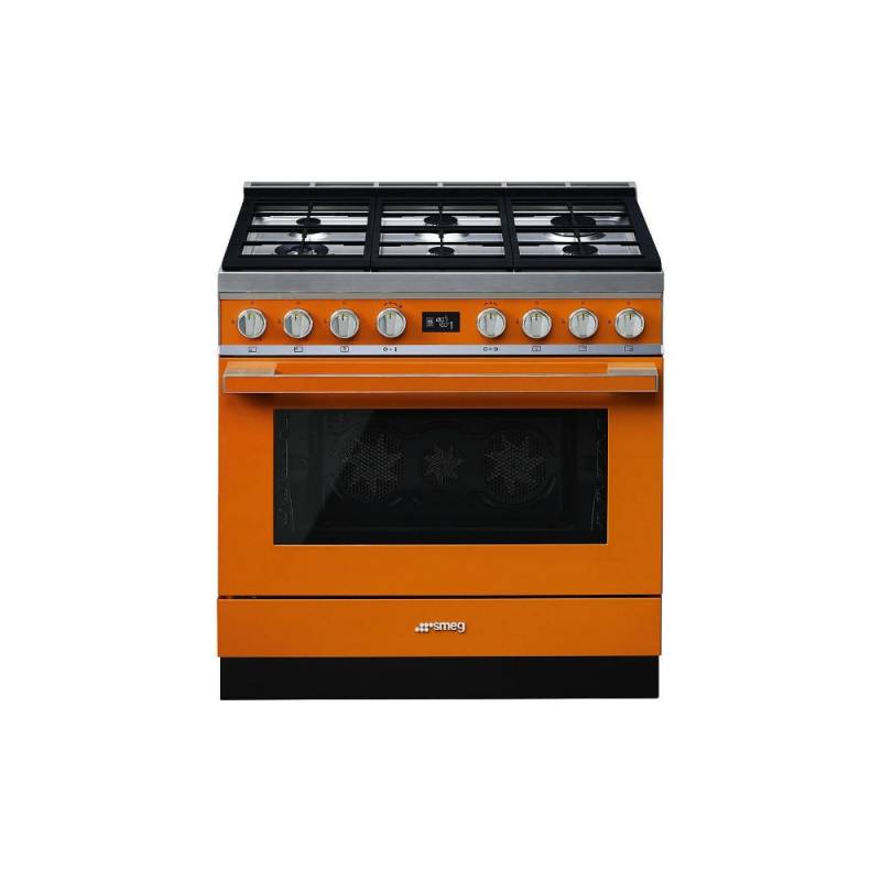 Masina de gatit mixta Smeg Portofino CPF9GPOR, 90 cm, portocaliu, 6 arzatoare, pirolitic