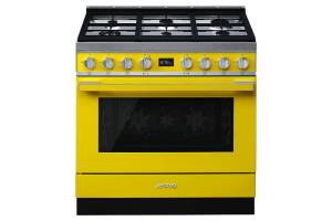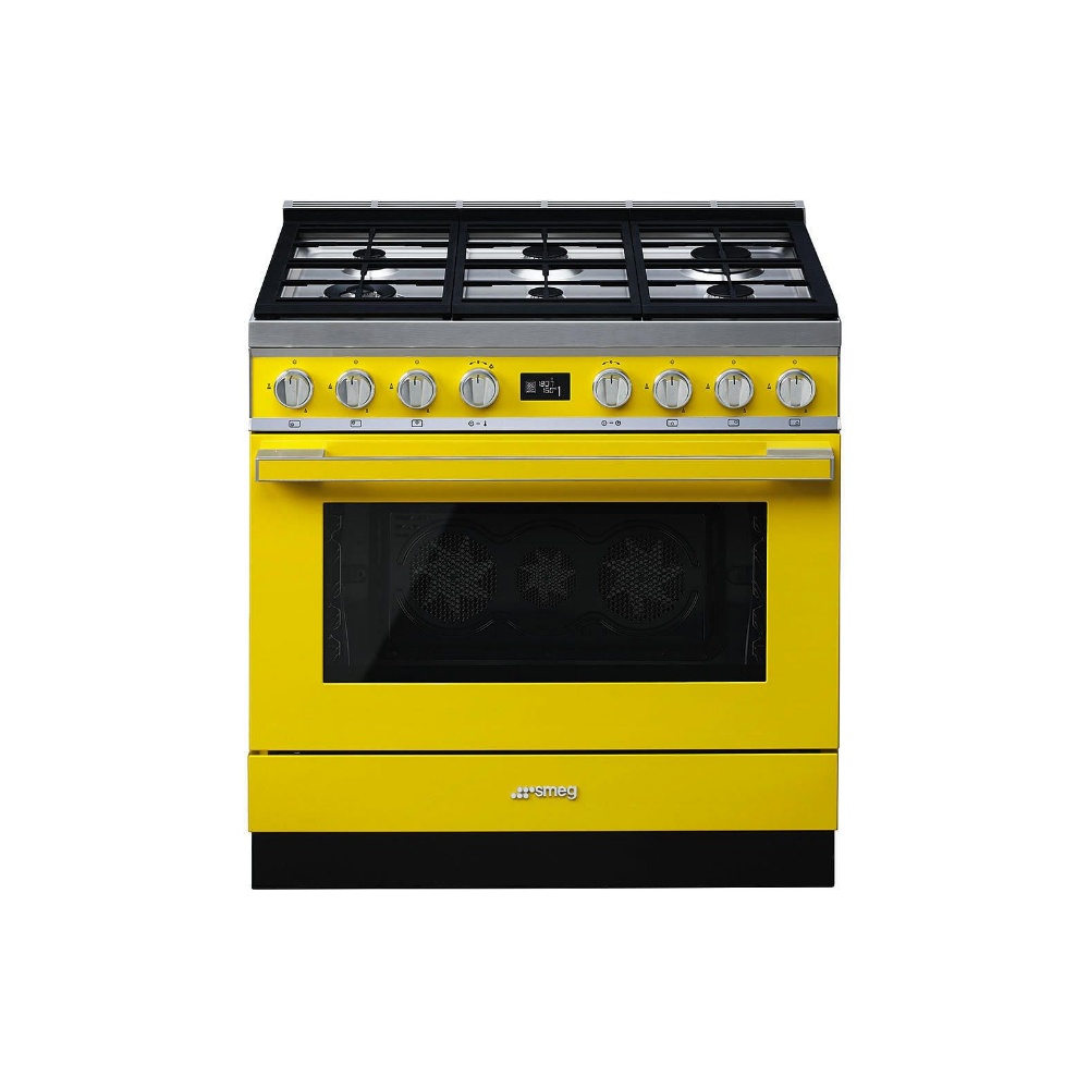 Masina de gatit mixta Smeg Portofino CPF9GPYW, 90 cm, galben, 6 arzatoare, pirolitic