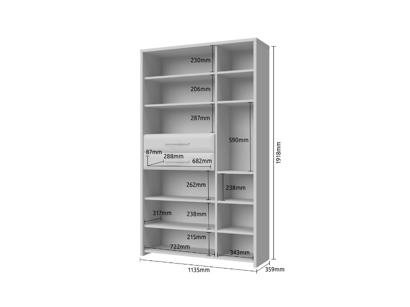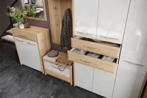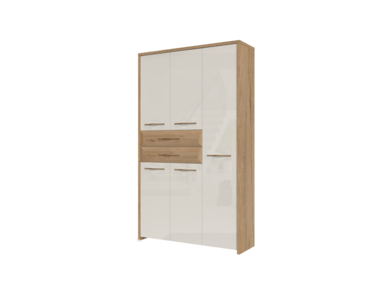 Dulap hol cu 5 usi si 2 sertare GALA 114x192x36cm bej lucios/ nuc Pacific