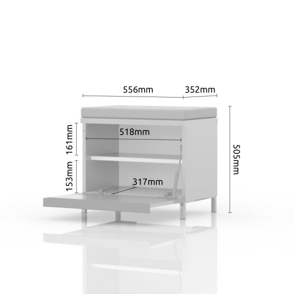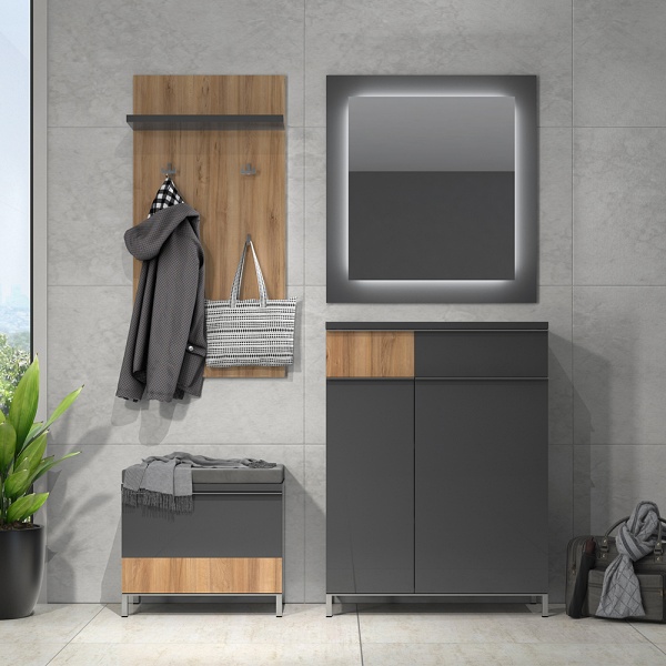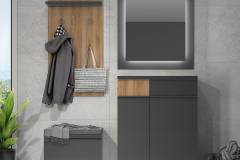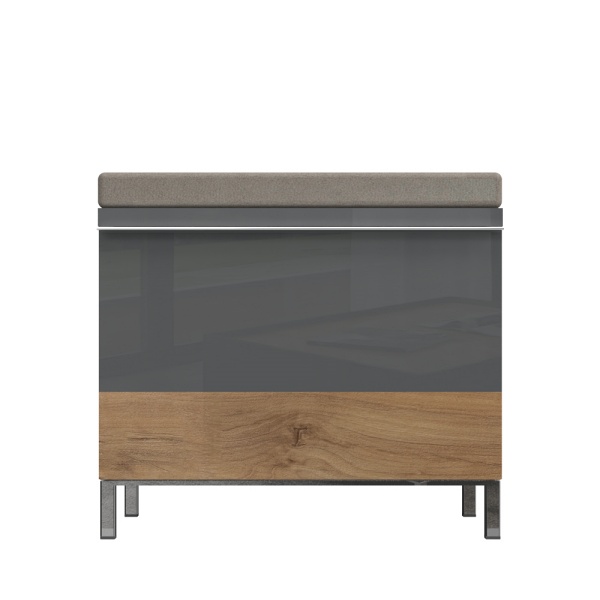 Banca cu 1 usa rabatabila ONYX 59x51x35cm antracit lucios/ nuc Pacific - tapiterie gri