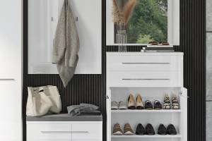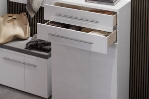 - doua usi si un sertar, decor alb lucios