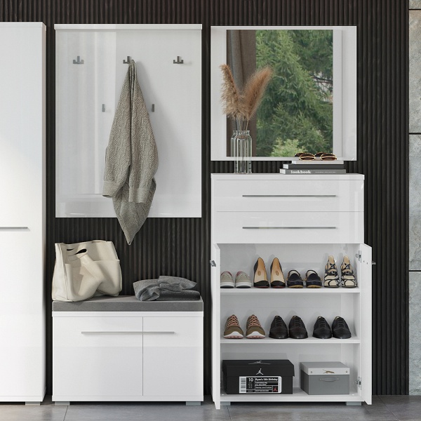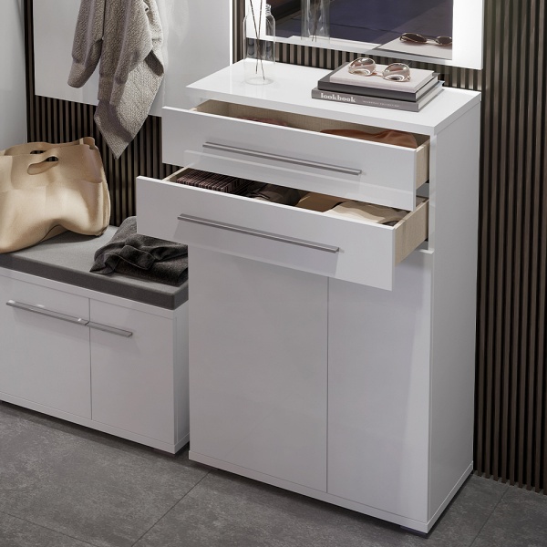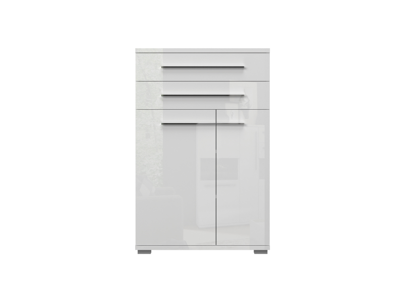Pantofar cu 2 usi si 2 sertare PIANO WHITE 76x117x36cm alb lucios