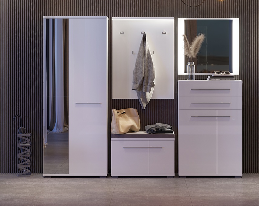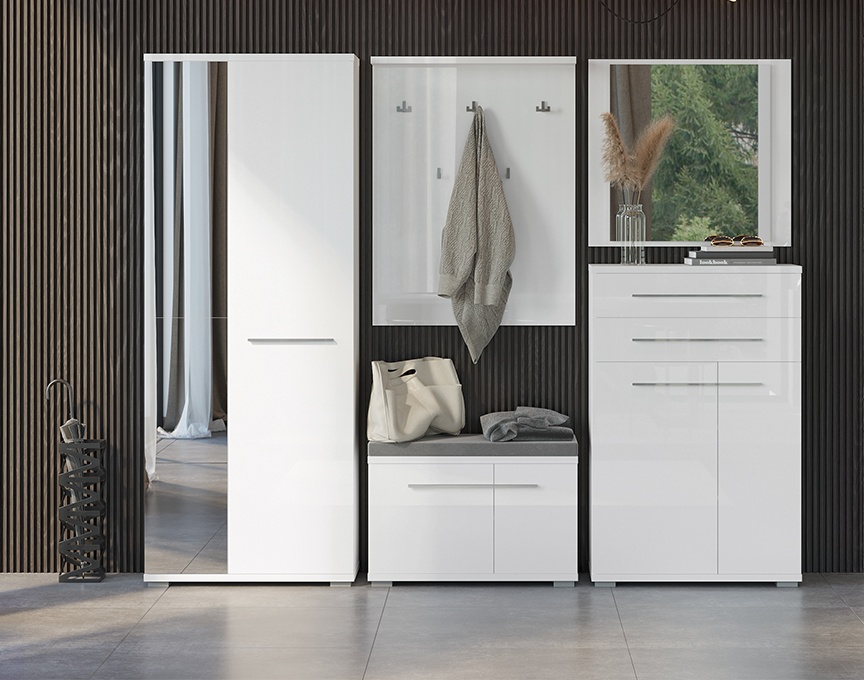 - o polita si o bara pentru umeras in interiorul dulapului cu oglinda