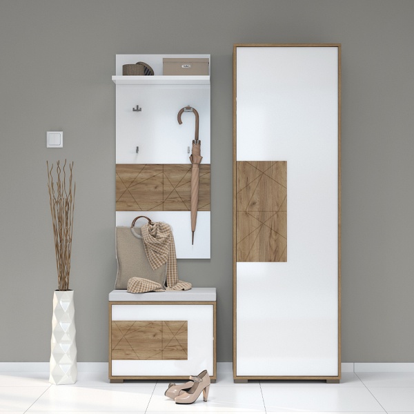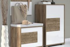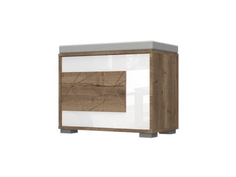 Banca cu 1 usa rabatabil STELA 63x48x36cm stejar tabac/ alb lucios