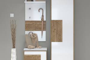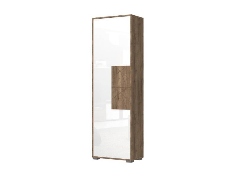 Dulap hol cu 1 usa STELA 63x197x36cm stejar tabac/ alb lucios