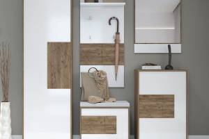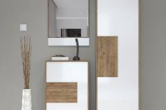 Colectia pentru hol STELA impresioneaza prin design contemporan, cu nuante cristal alb lucios si stejar Tabacco. Fronturile sculptate adauga un aer elegant, iar sistemele Push-On si soft-close asigura functionalitate si confort.