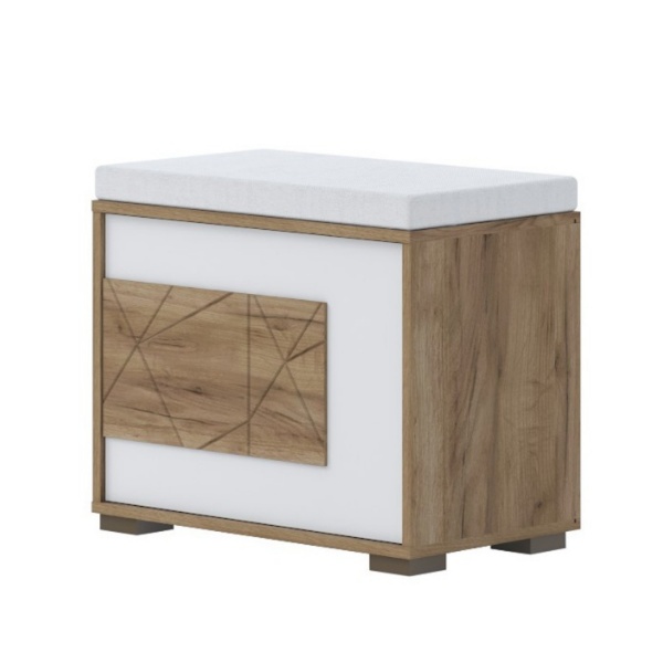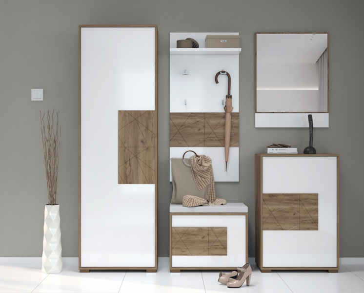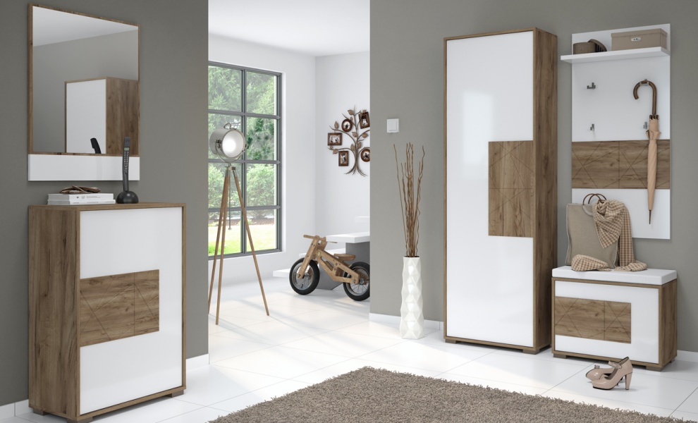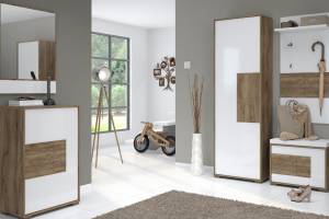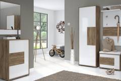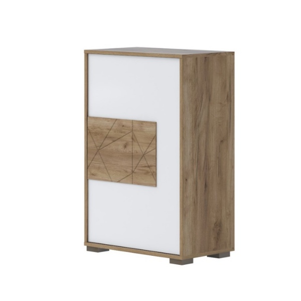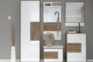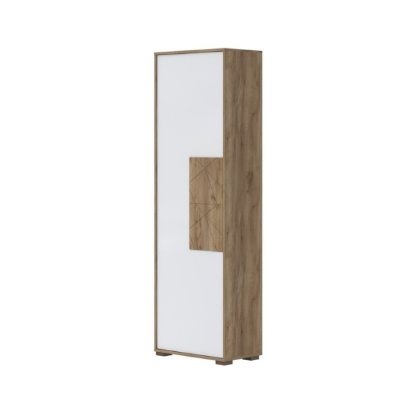- front din MDF, decor stejar Tobacco / alb lucios