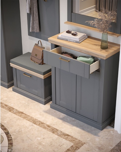 Banca cu 1 usa TARA GREY 65x51x38cm grafit mat/ Pacific walnut
