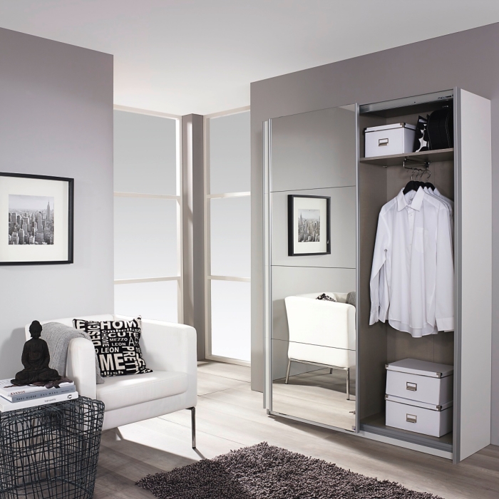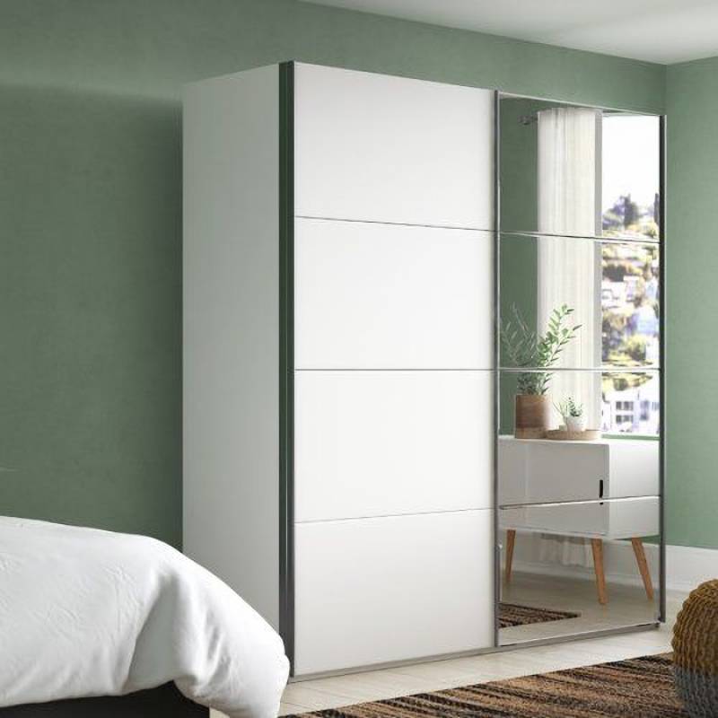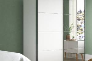 Dulap cu usi glisante MINOSA 137x197x48cm alb alpin/ oglinda, maner aluminiu
