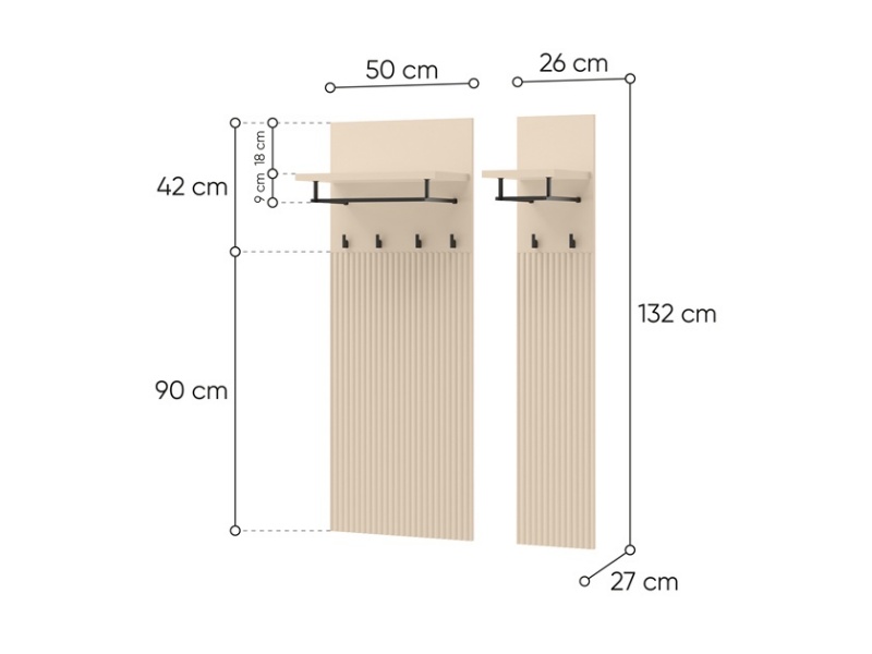 - cele 2 cuiere au fiecare cate o polita, o bara pentru umerase