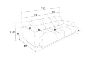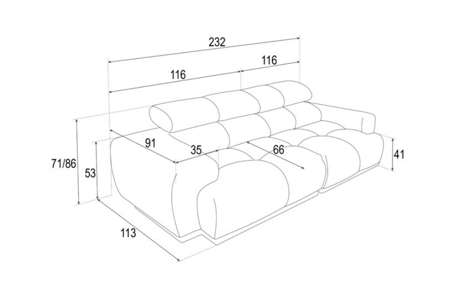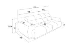 Canapea 2 locuri CHANI fixa, cu tetiere reglabile, personalizabila 232x113cm