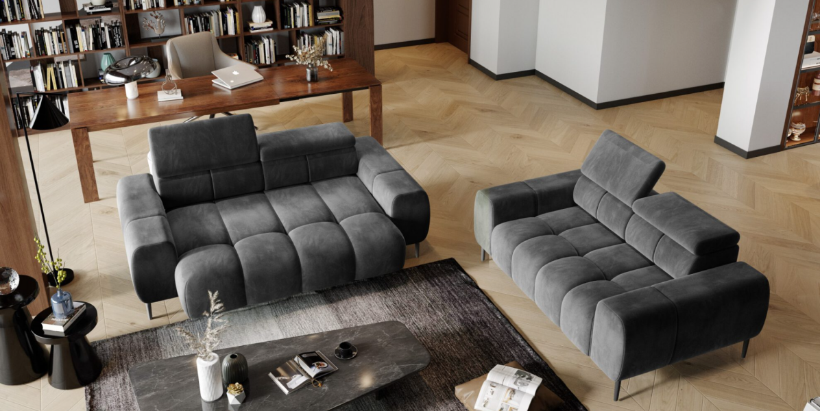 Canapea 2 locuri cu reglaj electric PLAZA cu tetiere reglabile, personalizabila 192x105cm