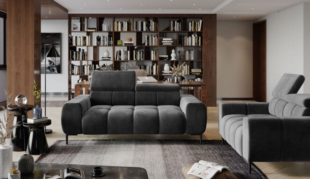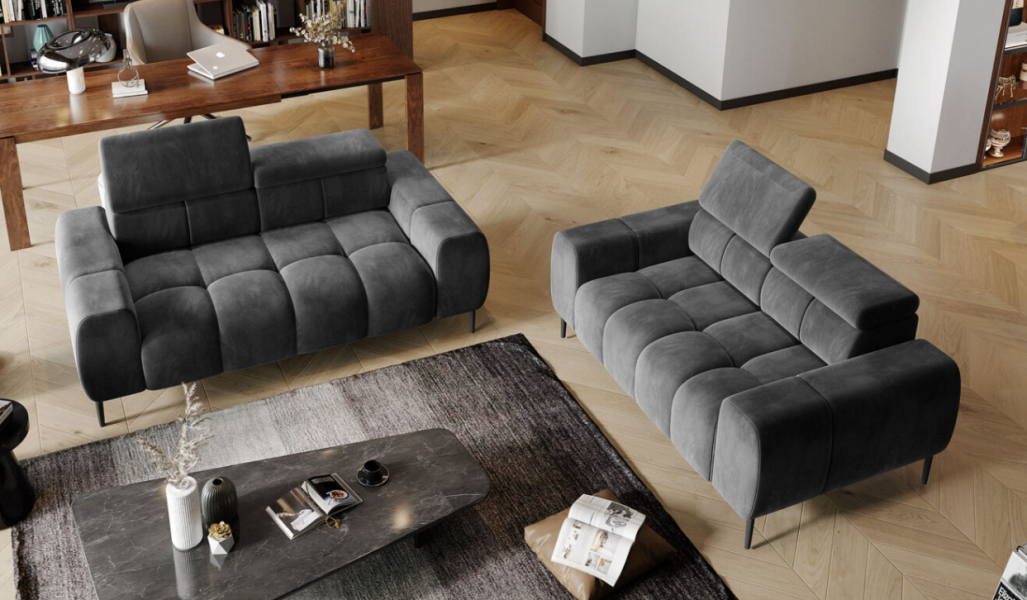 Canapea 2 locuri fixa PLAZA cu tetiere reglabile, personalizabila 192x105cm