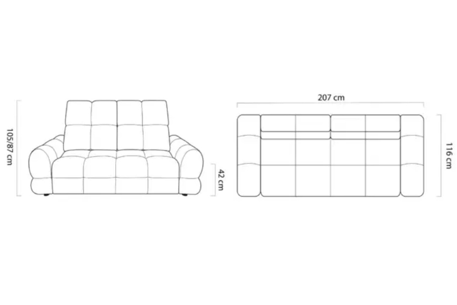 Canapea 3 locuri cu reglaj electric TOLLO cu tetiere reglabile, personalizabil 207x116cm
