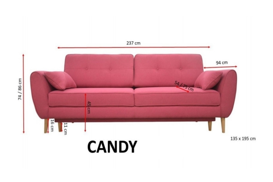 Canapea 3 locuri extensibila CANDY cu lada pentru depozitare, personalizabila 237x94cm
