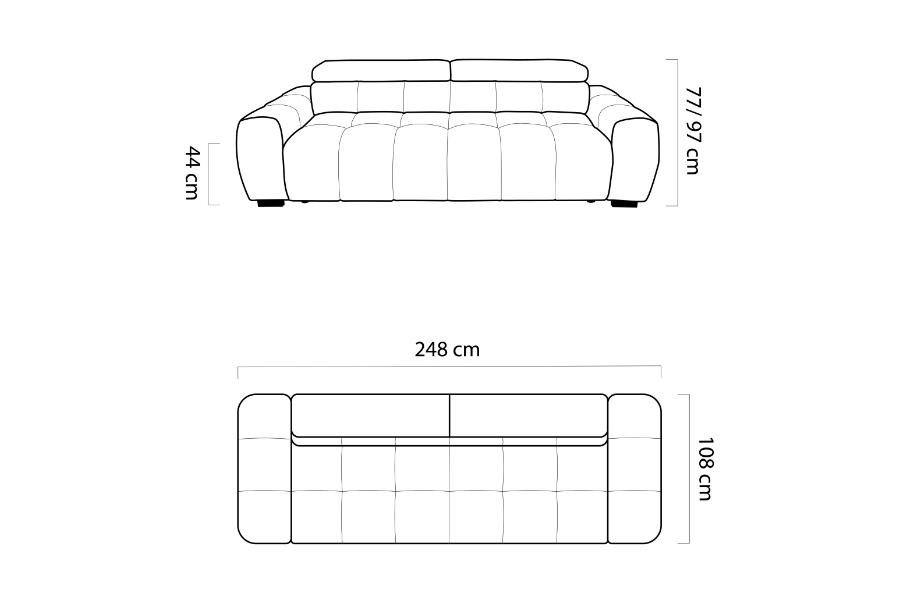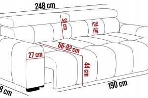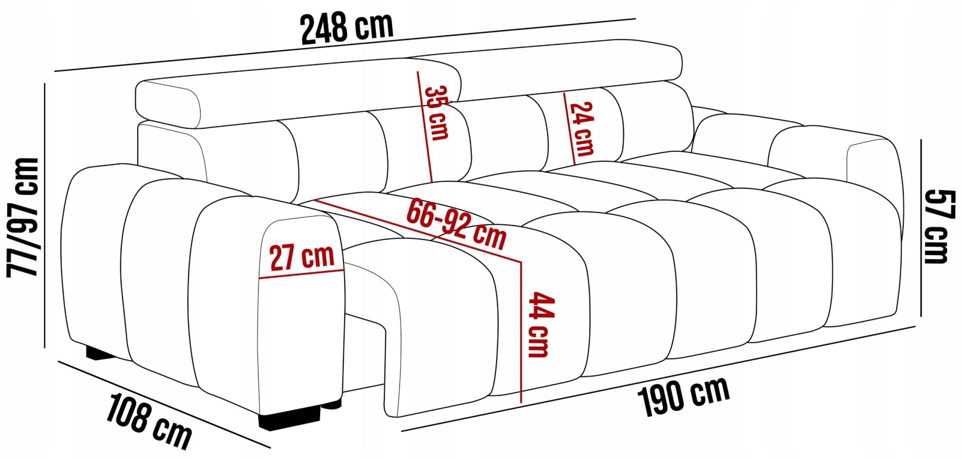 Canapea cu reglaj electric BULL cu tetiere reglbile, personalizabila 248x108cm