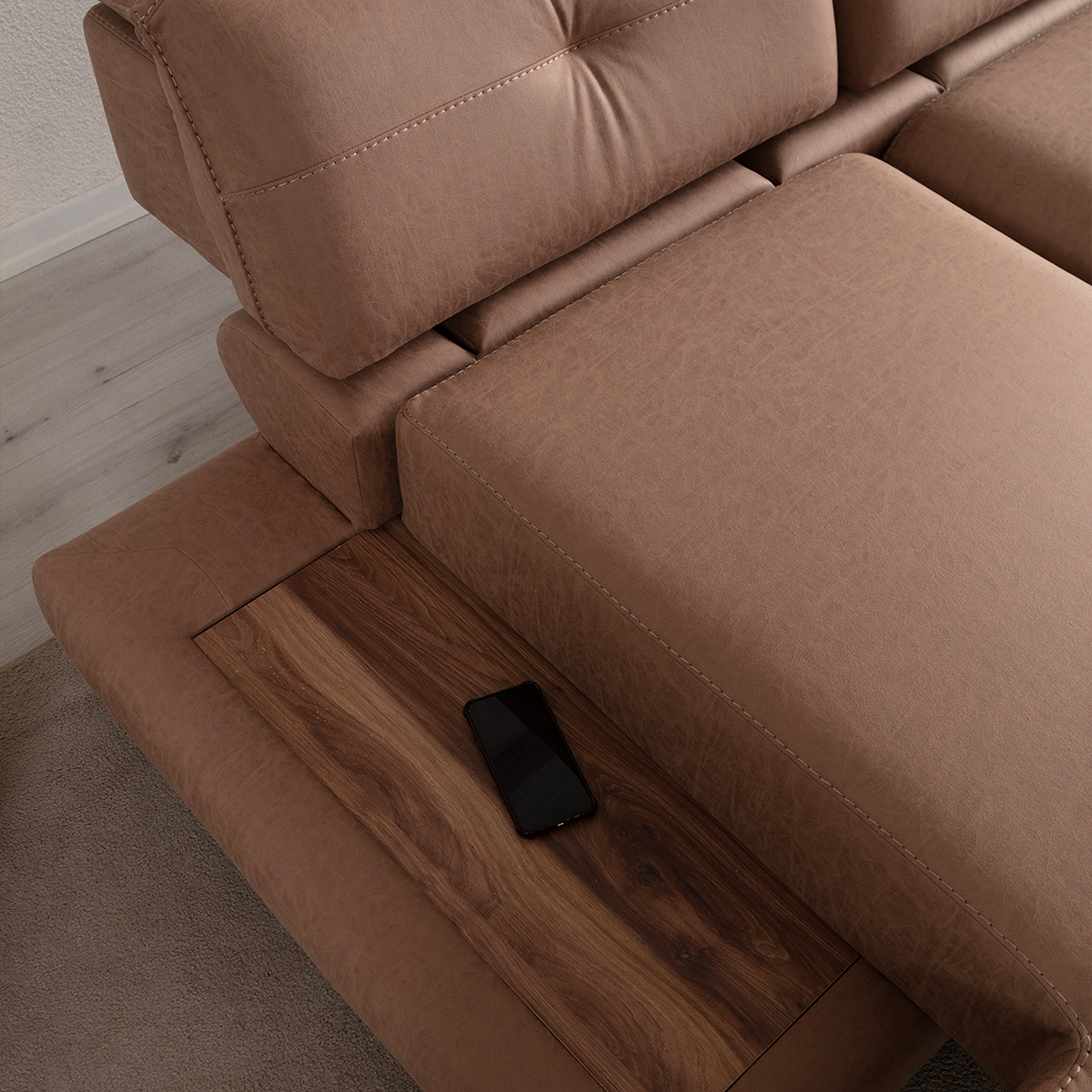 Canapea cu sezut rotativ TORINO RELAX cu tetiere reglabile, cotiere reglabile, spatar reglabil, suport tip masuta, adaptor USB, personalizabil 235x105cm