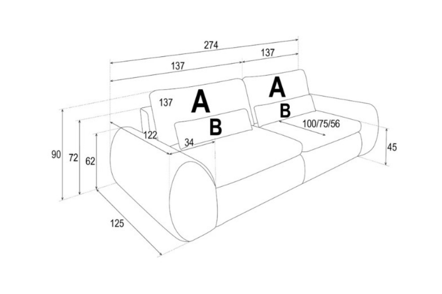 Canapea 2 locuri fixa LORETTA 250x98cm personalizabil