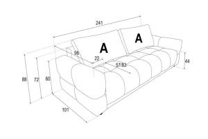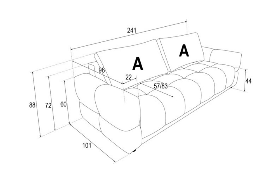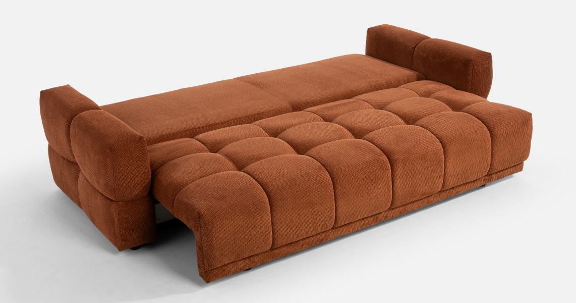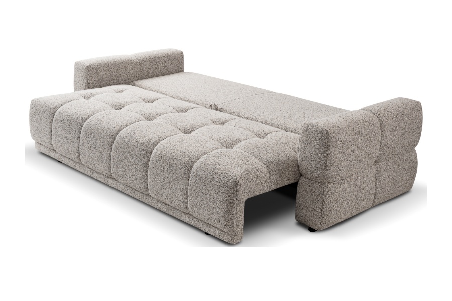 Canapea extensibilă modernă, cu 2 perne mari incluse, extensie tip doppel liege (DL) și spațiu de depozitare tip ladă. Modelul DANTE, dotat cu arcuri sinusoidale, combină funcționalitatea cu un design contemporan, ideal pentru un spațiu confortabil.