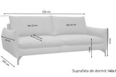 Canapea 3 locuri GAPPA fixa, personalizabila 222x94cm