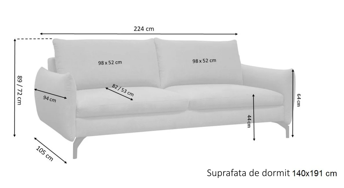 Suprafata de dormit: 191 x 140 cm