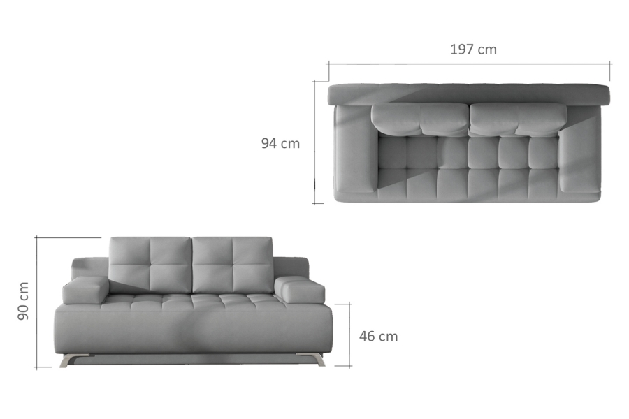 Canapea 2 locuri SELENE fixa, personalizabila 202x115cm