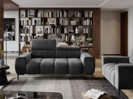 Canapea 2 locuri fixa PLAZA cu tetiere reglabile, personalizabila 192x105cm
