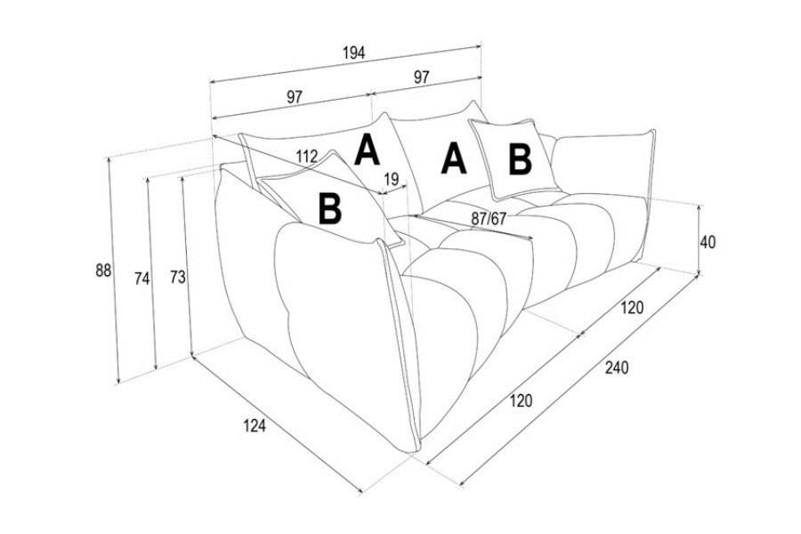 Canapea LAURA fixa, personalizabila 194-240x124cm