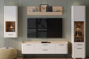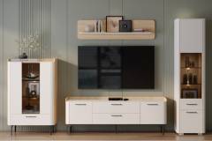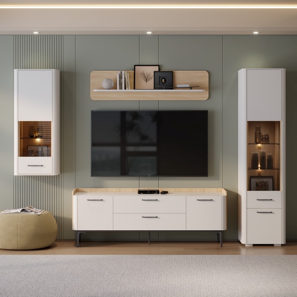Pretul afisat nu include comoda TV, coprurile suspendate, masuta, montajul, alte piese de mobilier si accesoriile din imaginea de prezentare a produsului.
